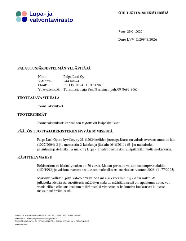 Kierrätyslasipullojen palautusjärjestelmän säännöt alkaen 20.12.2018