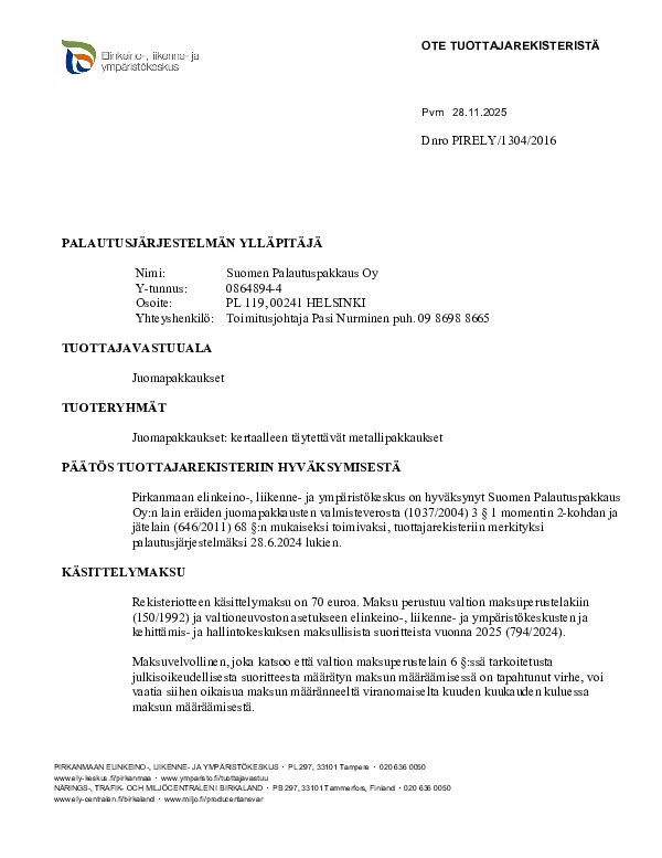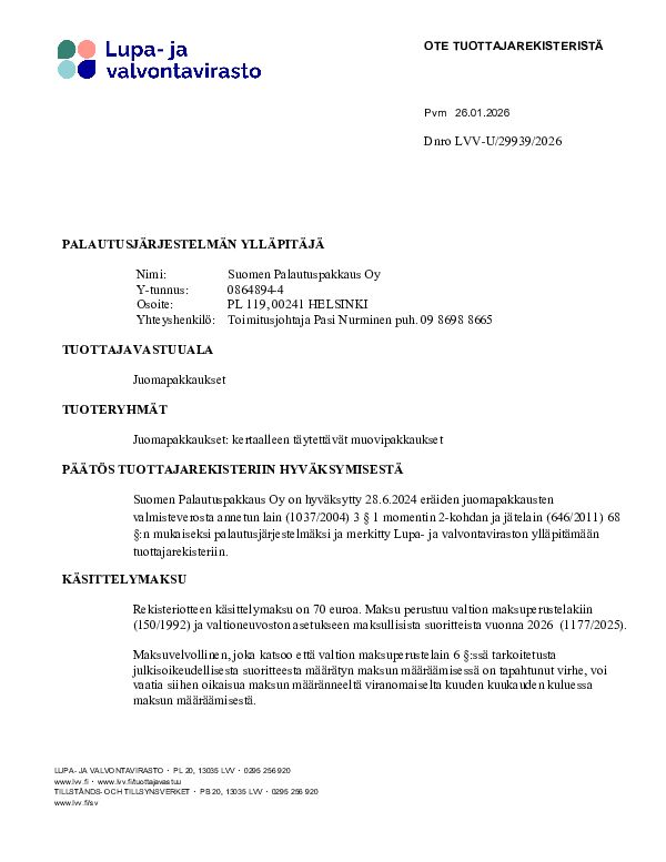 Kierrätysmuovipullojen palautusjärjestelmän säännöt alkaen 20.12.2018